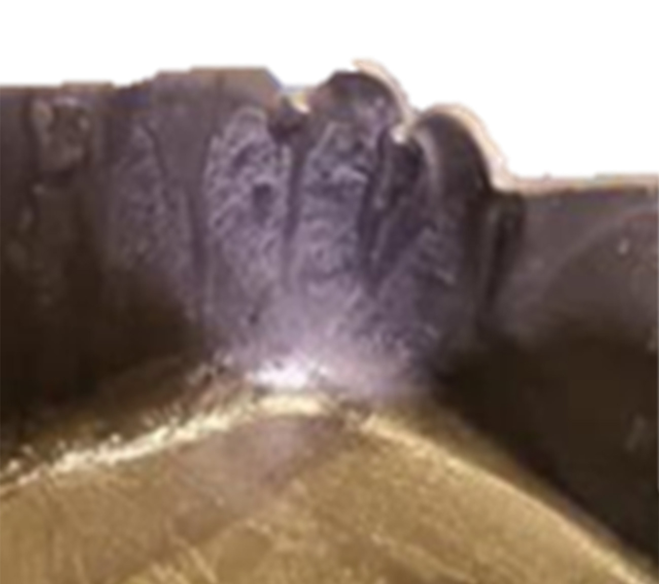 In addition to the wrinkling issue in the product, there was another aggravating factor present. High thickness and tension generated by pressing the wrinkle against the walls of the die caused premature tooling wear, resulting in loss of the coating (Figure 4a). The tool maintenance team had to intervene frequently, welding the affected area (Figure 4b), then adding material for subsequent finishing and polishing (Figure 4c).