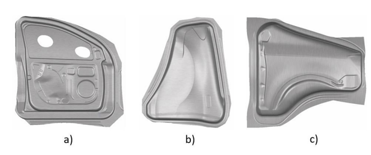 Figure 1 – Selected industrial components: a) steel inner door, b) aluminium fender and c) steel fender