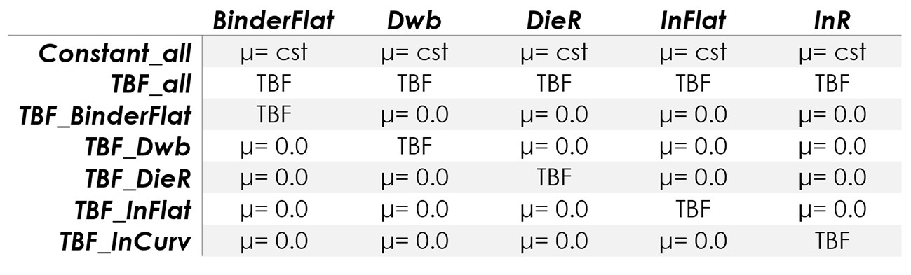 Table 1 – Variations with respect to the non-friction model