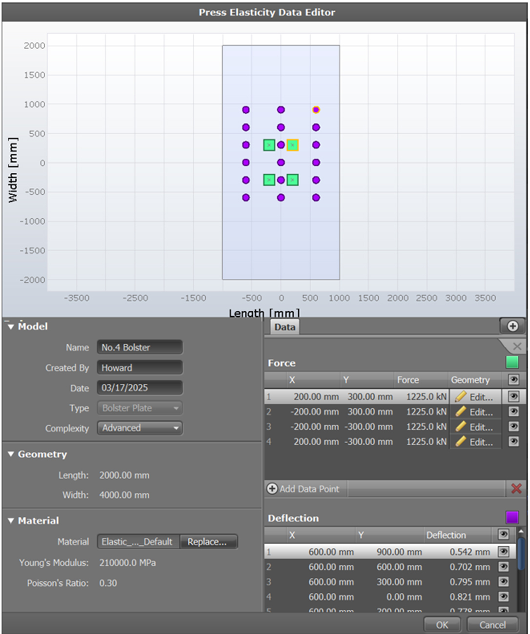 2. Calculating Tool Elastic Deformation: Tool elastic deformation was calculated in the software using the elastic deformation data from the trial press measurements.